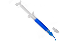 Gel clareador dental à base de peróxido de carbamida ou peróxido de hidrogênio para utilização do paciente.